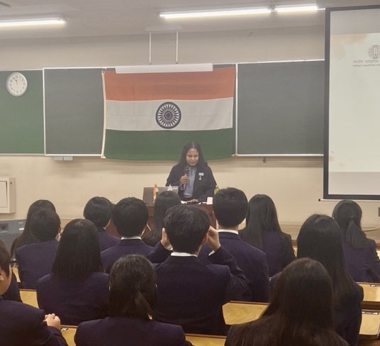 これまで生徒たちは、インドの衣食住、農業、建造物などの文化をはじめ、多様な価値観や社会背景についてグループ学習に取り組んできており、総領事から直接学べたことで調べてきた内容が実際のインド社会と結びつき、学びがより具体的で深いものになりました。各グループの探究成果の発表を終え、今後は視点を広げながら学びをさらに高めていく予定です。