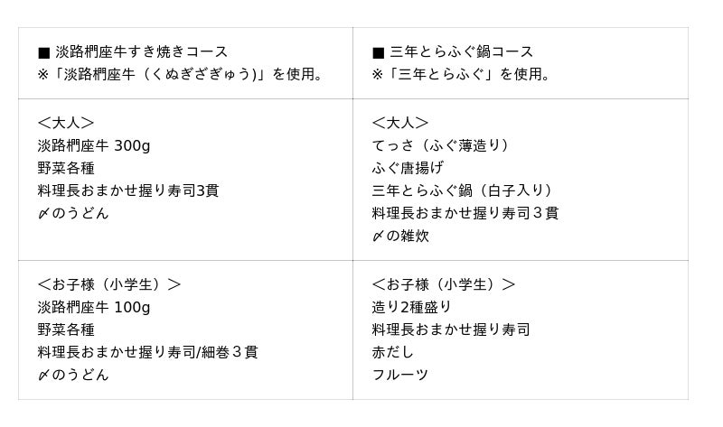 そこで当館では、5周年の特別企画として「寒い時期にはお部屋でほっこり」をテーマに、淡路島の旬 の魅力を存分に味わっていただける「淡路椚座牛すき焼きor三年とらふぐ鍋 お部屋食プラン」を企画いたしました。