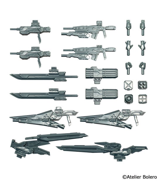 機体フレームは部位ごとに共通規格。各部位や武装を組み合わせて自分だけの機体を組み立てられ、もちろん第一弾とも組み合わせも可能!