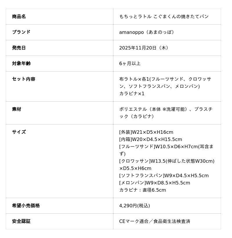 株式会社TowaStela(本社:東京都豊島区、代表取締役:丸谷陽介)が展開する日本生まれのベビーブランド〈amanoppo(あまのっぽ)〉は、2025年11月20日(木)に新商品『もちっとラトル こぐまくんの焼きたてパン [cocory friends]』の販売を開始しました。