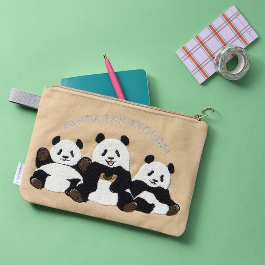 【NEW】YOU+MORE! パンダ3きょうだい シャンシャン・シャオシャオ・レイレイ もこもこ刺しゅうフラットポーチ