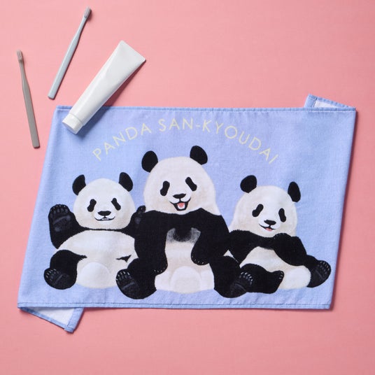 やさしい手ざわりに癒やされるフェイスタオルは、シャンシャン・シャオシャオ・レイレイの愛らしさをイラストで表現。パンダカラーが映えるニュアンスカラーと、綿100%のやわらかな素材が魅力。まるでパンダのおなかをなでているような心地よさです。