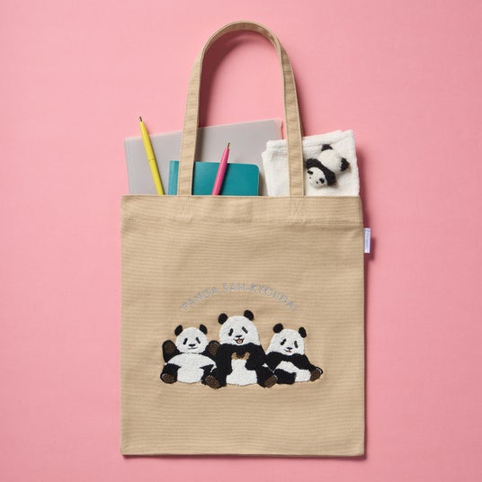 上野動物園で生まれ育ったパンダのシャンシャン・シャオシャオ・レイレイをモチーフにしたトートバッグ。さがら刺しゅうで表現したパンダたちは、なでなでしたくなるもこもこのさわり心地。A4対応で肩掛けもでき、丈夫なキャンバス地がデイリー使いにぴったりです。