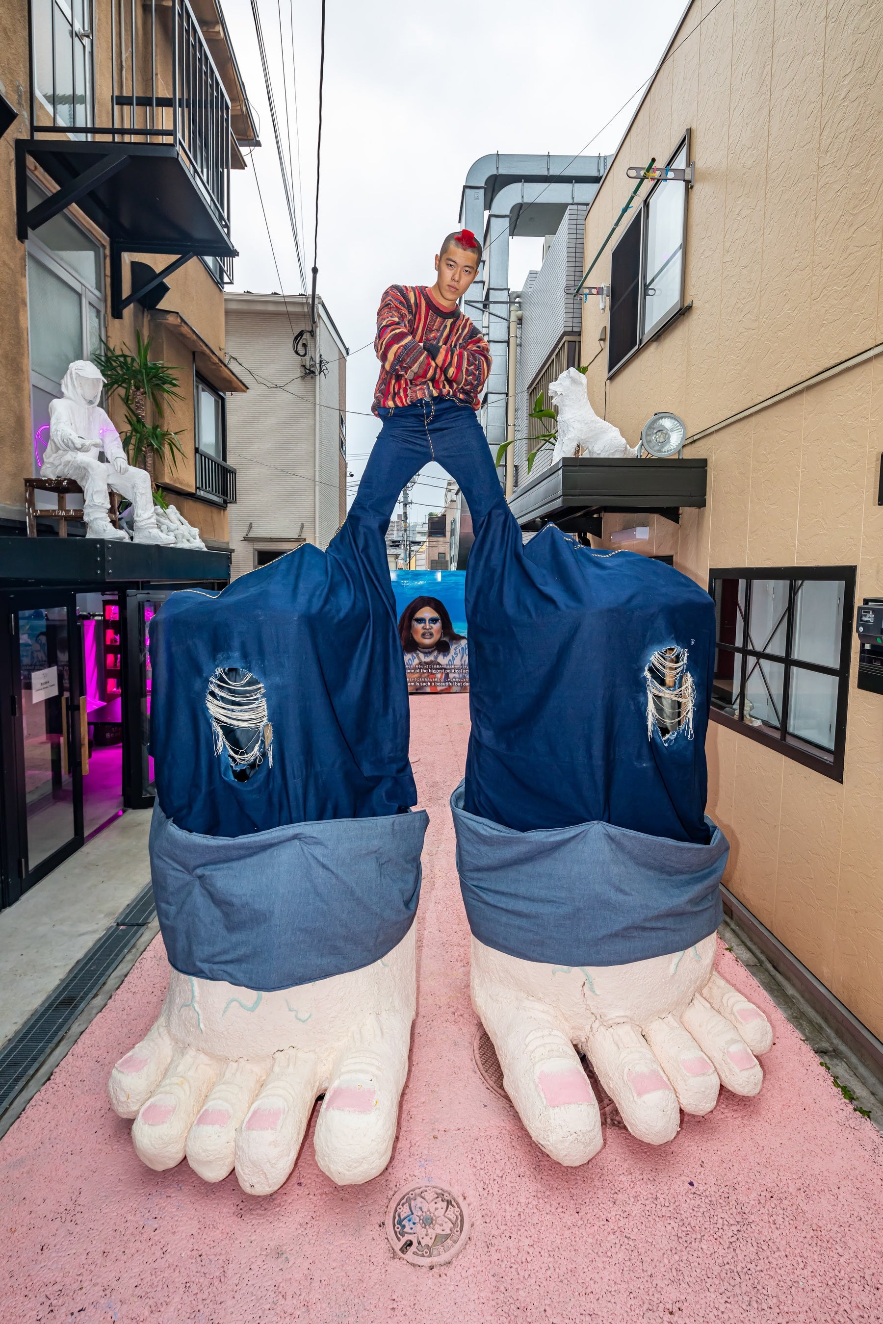《大蹴球》の試合は、本展会場であるデカメロンから程近い歌舞伎町シネシティ広場でも2025年11月に行われ、その記録映像もあわせて展示されます。本展を起点に日常へと広がる、ままならない関係性の妙をご体感ください。