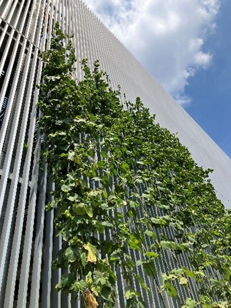 ホップはツル植物であることから緑のカーテンとして日陰効果や蒸散作用が得られるため、建物の温度を下げ空調の使用を減らすことでエネルギー消費削減とともに都市部への人口排熱の抑制を期待できます。地域のヒートアイランド現象緩和への貢献を目指し採用しました。また、多年生ツル植物でもあるため、2年目以降も継続して菜園することが可能です。これらは、野村不動産グループのサステナビリティポリシー「Earth Pride-地球をつなぐ」につながるものであるとともに、NMF・NPR で掲げるサステナビリティへの取り組み方針に沿って実施するものです。