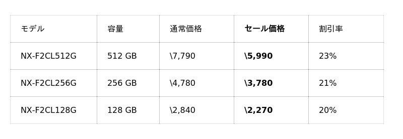 最大42%OFFのビッグセール!人気のCFexpress(TM) Type Bメモリーカード「NX-B3SEシリーズ」をはじめとした57アイテムがお買い得!