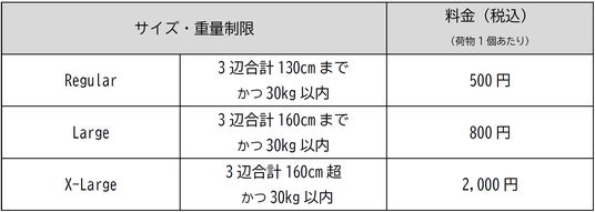 ※日にちを跨いでのご利用は、お預かりする日にち1日ごとに、荷物1個分の料金が発生します。