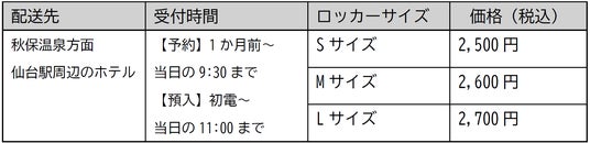 ※「BAGGAGE STORAGE+」でご利用いただけるのは仙台駅からの発送のみとなります。