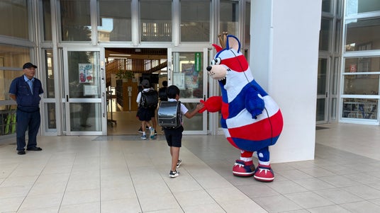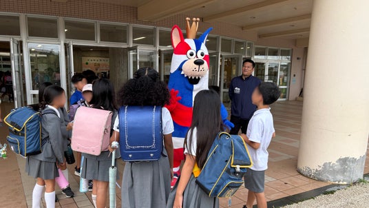 「おおきなわ」の活動の一環として実施している「ゴーディーによる朝のあいさつ運動」において、11月はホームタウン沖縄市をはじめ、うるま市、北谷町、嘉手納町の小中学校を訪問し、あいさつ運動に参加いたしました。ご協力いただいた各学校の皆さま、ありがとうございました。