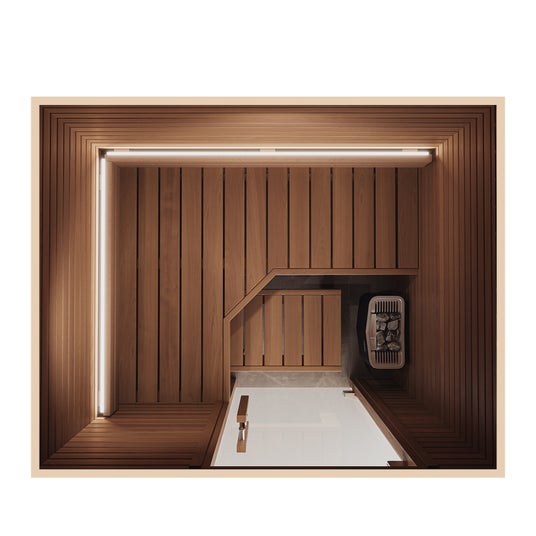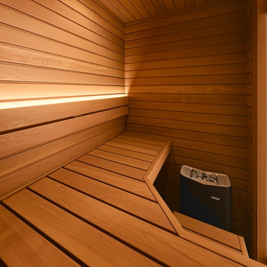 本モデルの最大の特徴は、清水みさとさんも「お気に入り」という『L字型ベンチ』。座面が広めに設計されているため、寝転んだり、足を伸ばしたりといった、自宅サウナならではの自由な体勢でゆったりとくつろぐことができます。