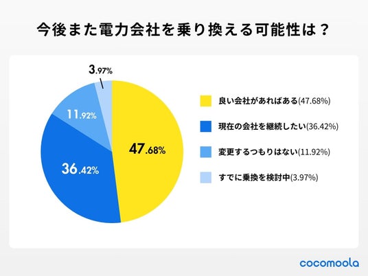 株式会社ゼロアクセル(本社:東京都千代田区、代表取締役:大福裕貴、以下ゼロアクセル)は自社運営サイト『ココモーラ』にて、「電力会社の乗り換えに関するアンケート調査」を行いました。