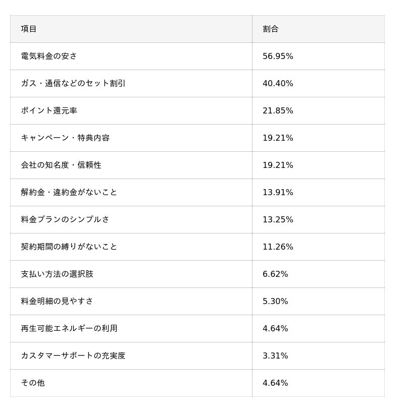 ■乗り換える電力会社を選ぶ際に、最も重視したポイントは何ですか?