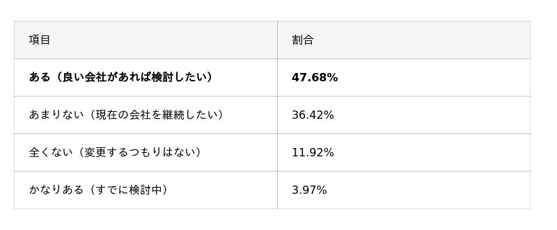 - 約半数(47.68%)が「もっと良い会社があれば再度乗り換えを検討したい」と回答しており、今後も電力会社に対する価格競争力への期待が強いことが伺える。