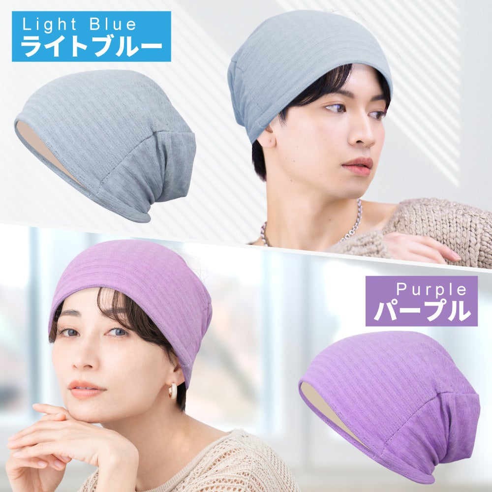 肌あたりのやわらかい生地が頭をふんわり包み込み、