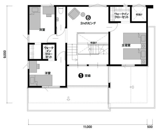 2階に設けた2ndリビングは、家族が思い思いの時間を過ごせる“オープンな共有空間”。読書や勉強、ストレッチなど軽い趣味にも使え、吹き抜け越しに1階リビングと緩やかにつながることで、家族の気配を感じつつ程よい距離感を保てます。“集う1階・ほどよく分かれる2階”という現代的な暮らし方を実現します。