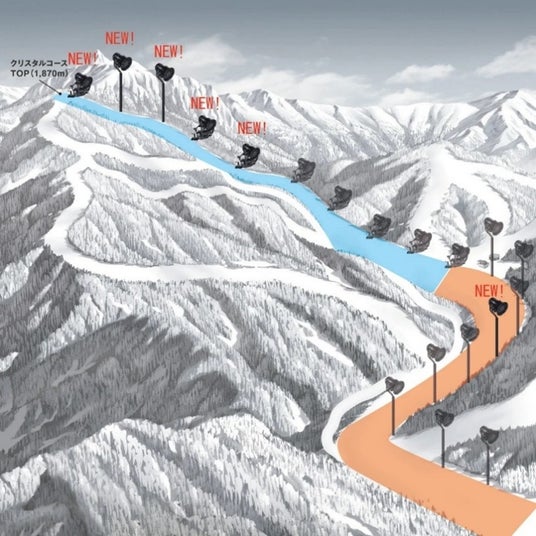 従来の川場スキー場ではクリスタルコース上部に人工降雪設備がなかった為、シーズン初期は現在人工降雪機を設置している桜川コース及び白鳥ダウンヒルコースのオープンが通例となっておりました。