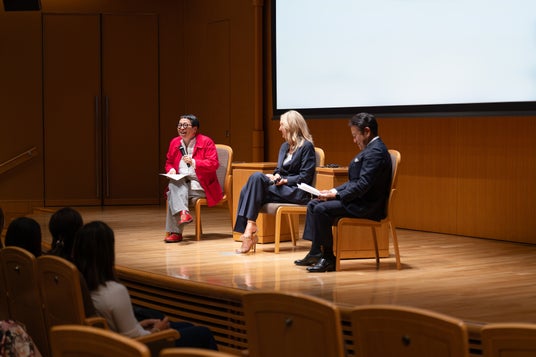 (左より)慶應義塾大学名誉教授 田村次朗氏、ブルガリ 副CEO ラウラ・ブルデーゼ、公益社団法人セーブ・ザ・チルドレン・ジャパン 専務理事・事務局長 高井明子氏