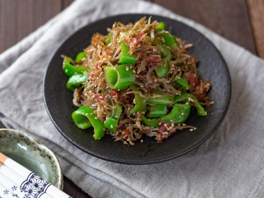 【ピーマンの梅じゃこ炒め】彩り鮮やか(ハート)スピードおつまみ by misaさん