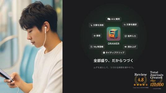 DRAWER は、「英語を、日常とつなげる」をコンセプトにしたAI英語学習アプリです。日記や自分の思考を英語で書くことで “自分専用の英語” を蓄積・可視化し、AIが最適なフィードバックを提供します。
