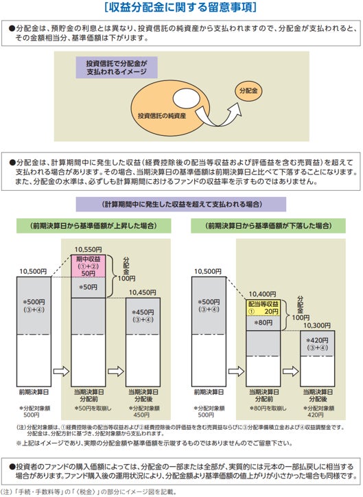 - 分配金は収益分配方針に基づいて委託会社が決定します。あらかじめ一定の額の分配をお約束するものではありません。分配金が支払われない場合もあります。