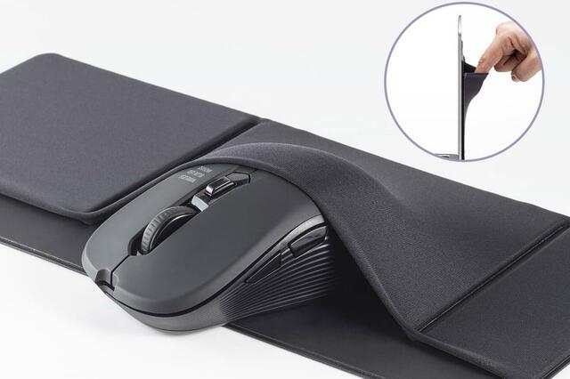 ポケットは伸縮性のある素材でできているので、マウスのような厚さのある機器も入れられます。