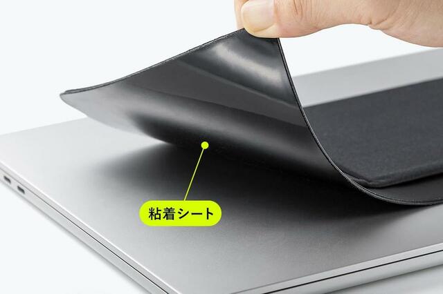 貼りつけたままのPC使用やバッグへの収納もOK。荷物を入れていないときは厚さ0.3cmと嵩張りにくくなっています。