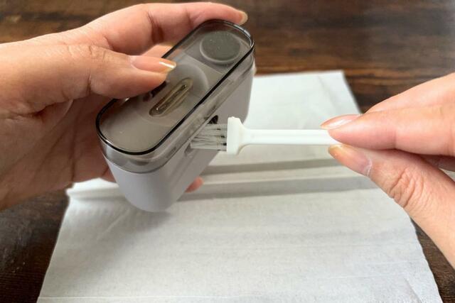 爪切りが終わったらダストボックスの蓋を開けて、付属のミニブラシでかき出して掃除をするのですが、この作業が少ししにくかったです。