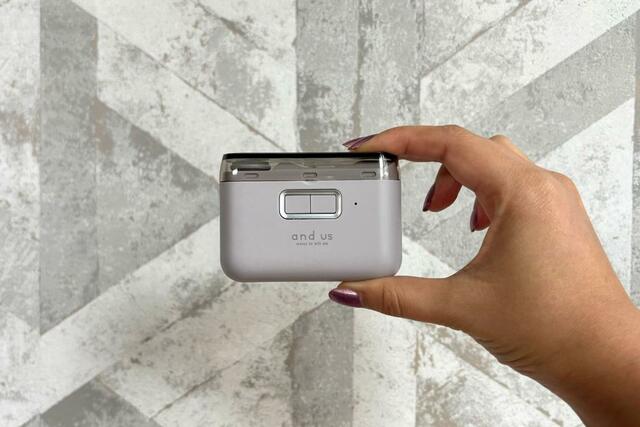 スリーコインズの「2WAY電動爪切り/and us」は、棒状の刃がスクリューのようにまわることで爪が少しずつ切れていく仕組み。