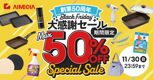 ●対象商品が最大50%OFFとなる特別価格で販売いたします。暮らしに役立つアイメディアの人気商品を多数取り揃えております。