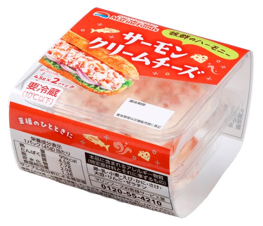 マリンフーズブースでは、マリンフーズ自慢の商品である「ごろっとサーモン丼」と「サーモンクリームチーズ」を酢飯とともにきれいな層になるように盛り付けた「ミルフィーユ寿司」やオマール海老の頭を丸ごと加工した「オマール海老のスープ」、クラッカーにサーモンクリームチーズをディップする「おつまみサモチー」を販売いたします。また、今回は販売メニューに使用する商品のうち、オマール海老のスープとサーモンクリームチーズをお買い求めいただけます。