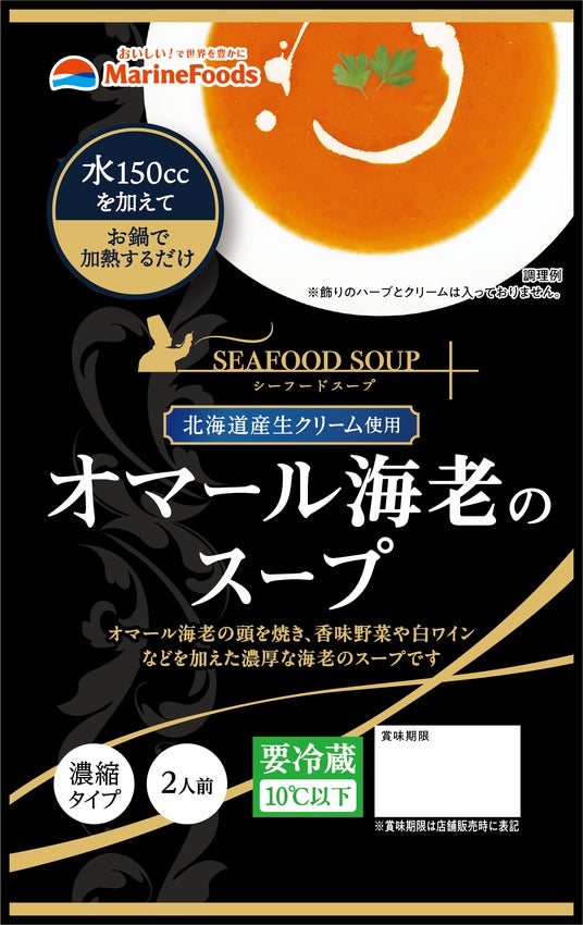 オマール海老の頭を使用したスープのもとです。水150ccを加えるだけで、家庭でお手軽にオマール海老のスープが味わえます。