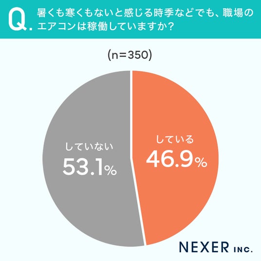 ■46.9%が、暑くも寒くもないと感じる時季でも職場のエアコンは「稼働している」と回答