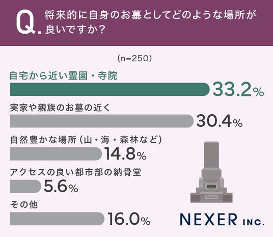 33.2%の方が「自宅から近い霊園・寺院」と回答し、最多となりました。