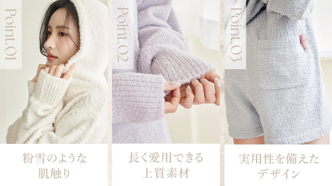 FEATURE 3:忙しい一日の終わり、肌も心も癒やすルームウェア【P.snow】
