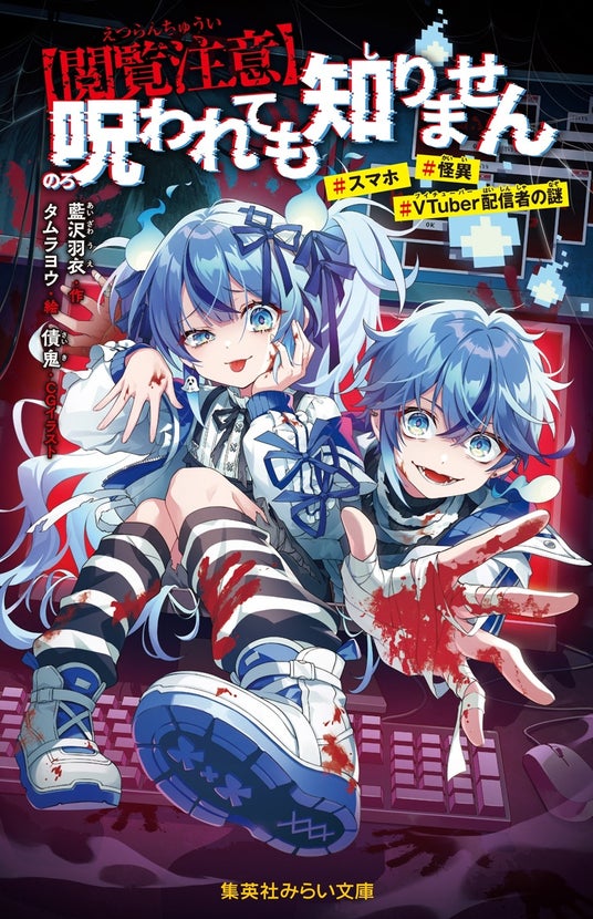 『【閲覧注意】呪われても知りません #スマホ #怪異 #VTuber配信者の謎』書影 藍沢羽衣・著/タムラヨウ・絵/債鬼・CGイラスト/集英社みらい文庫