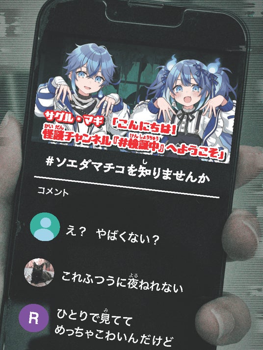 『【閲覧注意】呪われても知りません #スマホ #怪異 #VTuber配信者の謎』イラスト (c)タムラヨウ/集英社 (c)債鬼/集英社