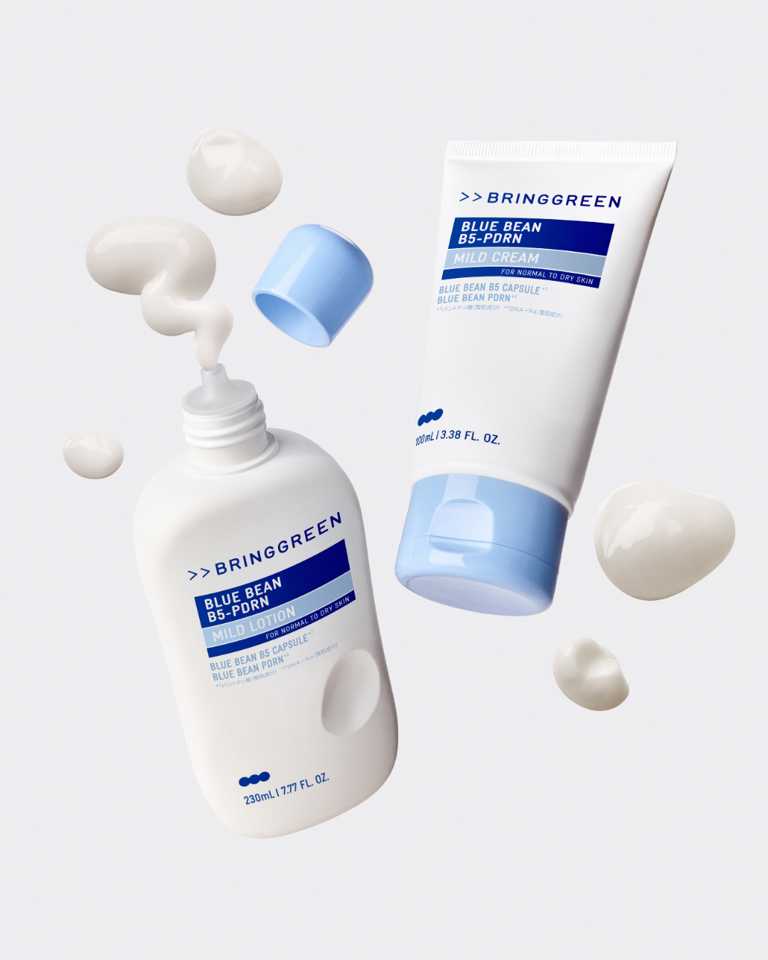 BRINGGREEN(ブリングリーン)の“青豆*²モイスト処方”という発想から誕生した独自成分「ブルービーンB5-PDRN(TM)︎*¹」。青豆由来のパンテノール「青豆カプセル*³」と青豆由来のPDRN*⁴を組み合わせた成分で、乾燥が目立つ敏感肌やインナードライ肌を、すこやかなお肌へ整えます。