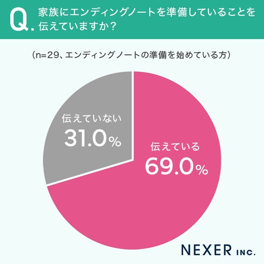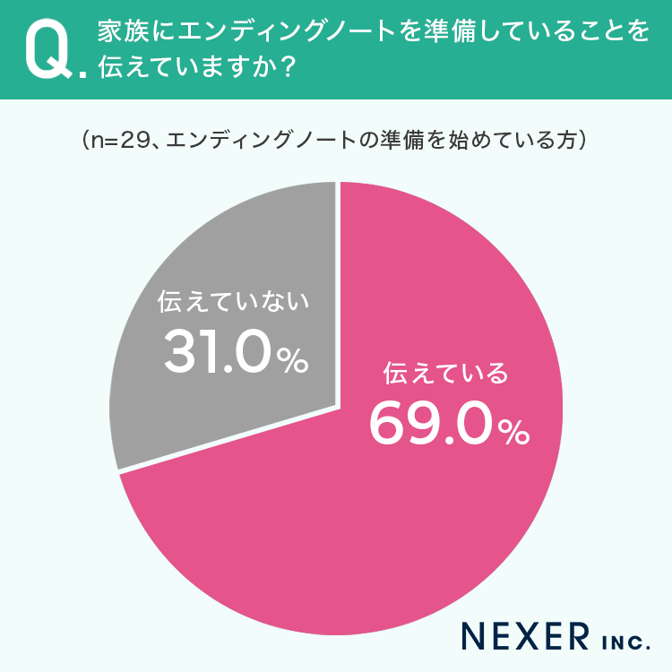 約7割が、エンディングノートを準備していることを家族に伝えています。