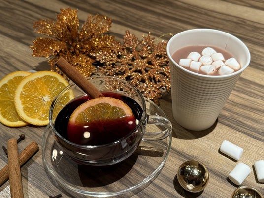 シナモン香る大人のホットワイン、マシュマロ入りの甘いホットチョコレートに、自家製の肉球クッキーがついた見た目も楽しい冬限定ドリンク。
