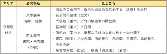 京都駅を発着点とし、特別公開寺社の入場料金や乗車料金がセットになった、便利なプランを設定しました。