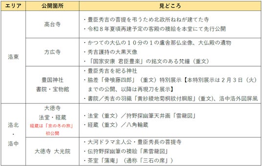 昭和42年1月に始まった本企画は、令和8年に第60回を迎えます。今回は、大河ドラマ「豊臣兄弟!」の主人公・豊臣秀長と兄・秀吉ゆかりの地をテーマに、15件の貴重な非公開文化財を特別公開します。また、定期観光バスやタクシーで巡る特別コースのほか、京都の歴史や文化をより深く楽しめる体験プラン、60回記念の特別企画など、多彩で充実した内容で展開します。