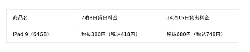 延長料金(共通):1日あたり税抜100円(税込110円)発生