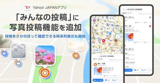 LINEヤフー株式会社(以下、LINEヤフー)が提供する「Yahoo! JAPAN」アプリ(Android版)(※1)は、ユーザー参加型の投稿機能「みんなの投稿」モードに、リアルタイムの天候や季節感あふれる写真を地図上で共有できる写真投稿機能(以下、本機能)を新たに追加しました。また、ユーザー投稿が最大で7日間さかのぼって確認できる、時系列表示も開始しました。本機能は今冬、iOS版でも順次提供予定です。