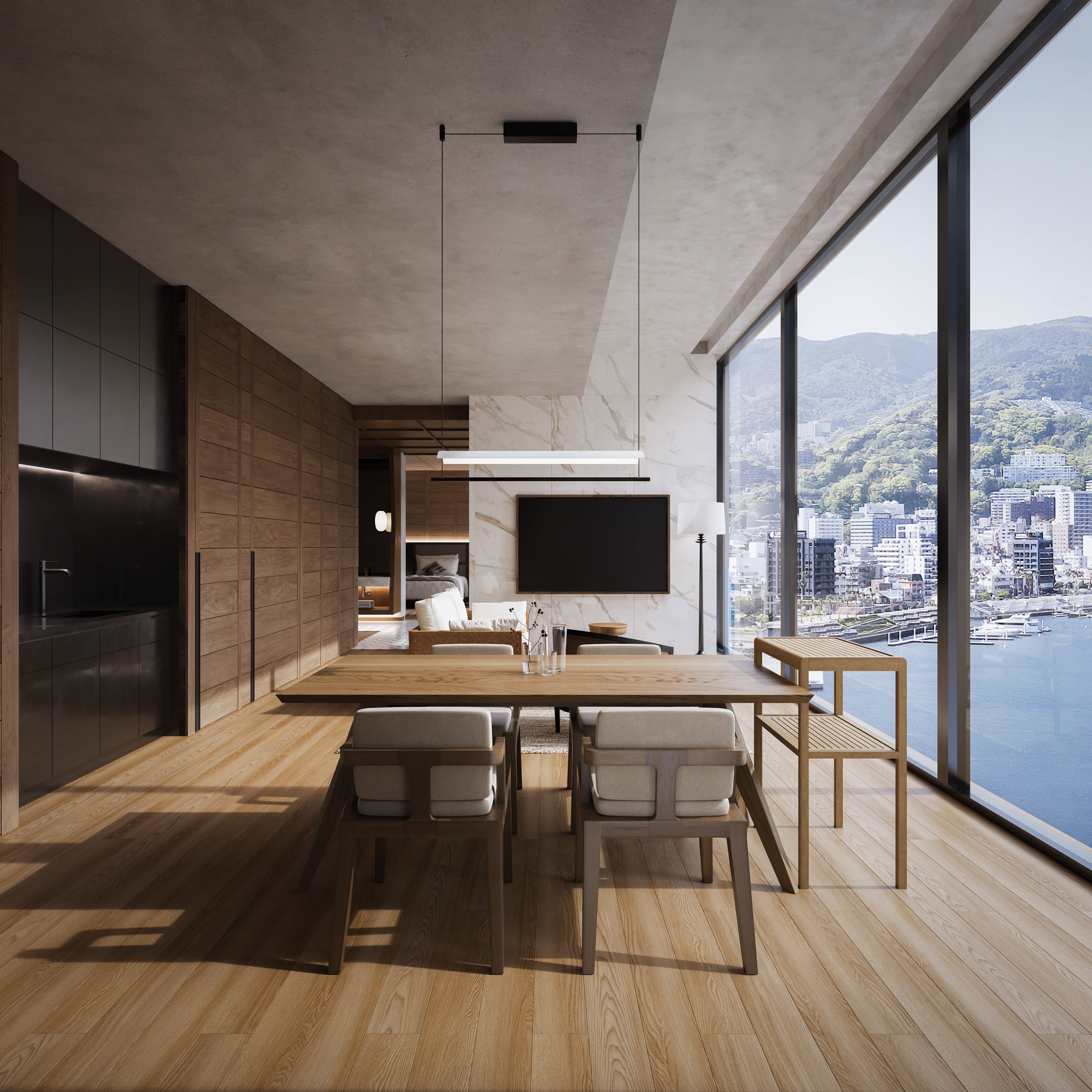 都会では決して得られない、海・山・街の気配が重なる熱海の風景を、ただありのままに享受することを目指して設計されています。