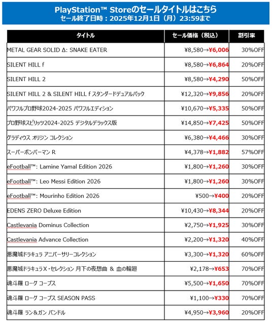 また、『SILENT HILL 2』、『プロ野球スピリッツ2024-2025 デジタルデラックス版』、『パワフルプロ野球2024-2025 パワフルエディション』もそれぞれ半額で購入できます。