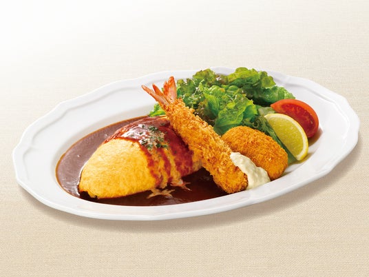 ロイヤル伝統のコクのあるドミグラスソースで楽しむオムライスと、天然海老フライ、紅ずわい蟹のクリームコロッケ、サラダを一皿に。洋食の定番をお楽しみいただけます。