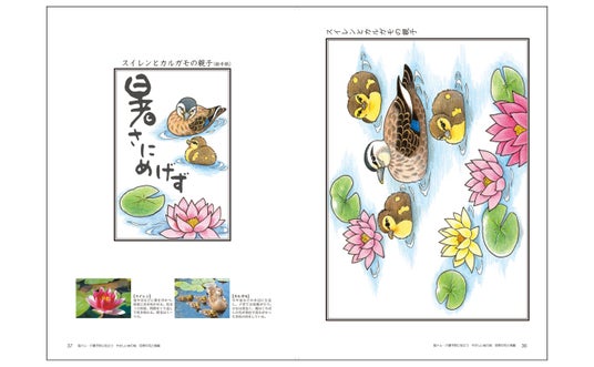 「スイレンとカルガモの親子」ぬり絵見本