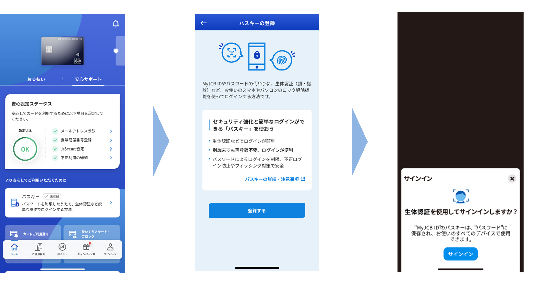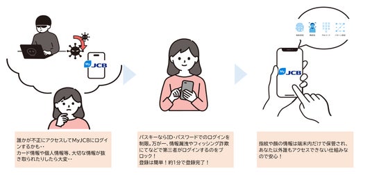 株式会社ジェーシービー (本社:東京都港区、代表取締役会長 兼 執行役員社長:二重 孝好、以下:JCB)は、会員専用WEBサービスMyJCBの新しいログイン認証方法として「パスキー」を導入しました。