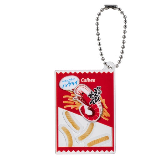 カルビーの大人気お菓子がシャカシャカアクリルチャームに!本物のお菓子そっくりなアクリルが中でシャカシャカ動く、見ても振ってもダブルで楽しい仕様です!