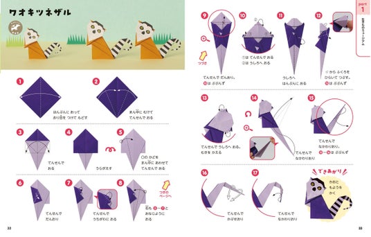 見やすい大きめのカラーの折り図写真で、折り方がわかります。難しい部分には途中図や拡大図などもはさみ、わかりやすく説明しています。最後に「できた!」という達成感を味わえるように、もっと遊べるひと工夫も紹介しています。